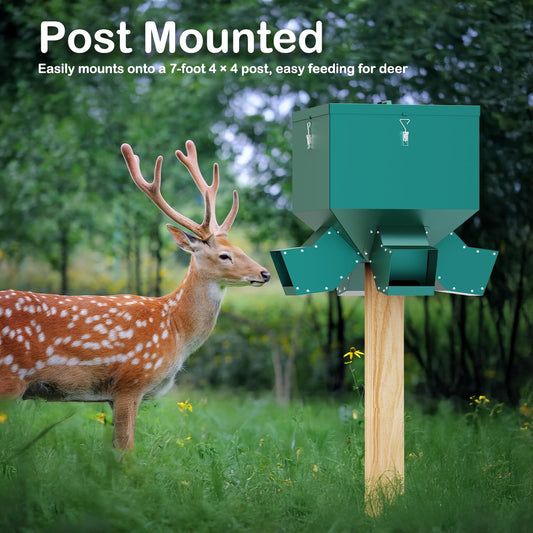 Gravity Feeder, 150lb Large Capacity Gravity-Fed Deer Feeder, Game Hunting Feeder, Deer and Wildlife Feeder, Protein 4 Feed Head, Green
