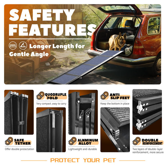 RUDCXDY 63" Foldable Dog Car Ramps Portable Pet Ramp for Large Dog and Small Dogs, Outdoor Dog Ramp into a Sedan, SUV and Trucks
